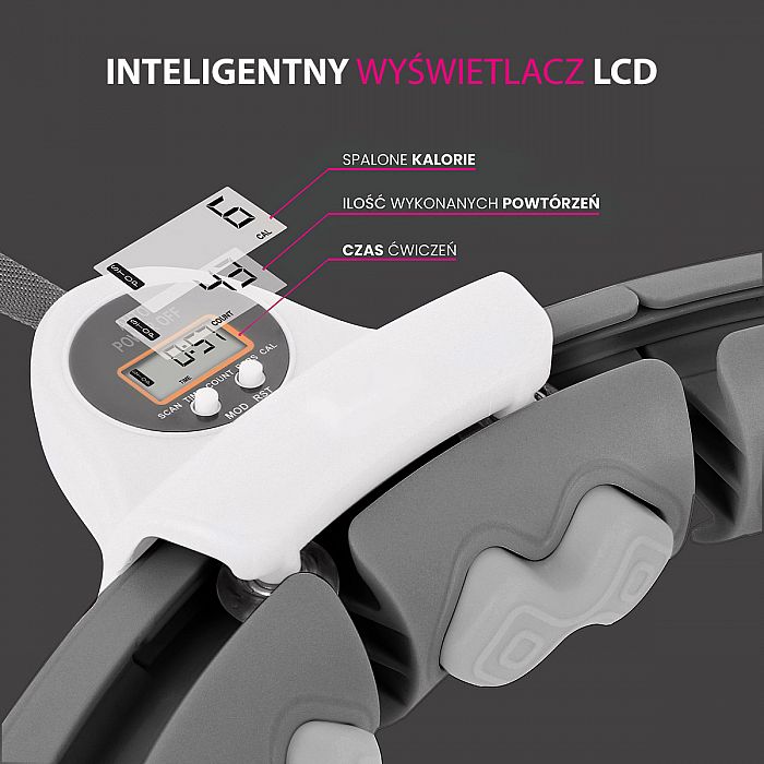 HMS HHW06 je hula hop obruč s nastavitelnou délkou, masážními výstupky, počítadlem a rotujícím závažím.