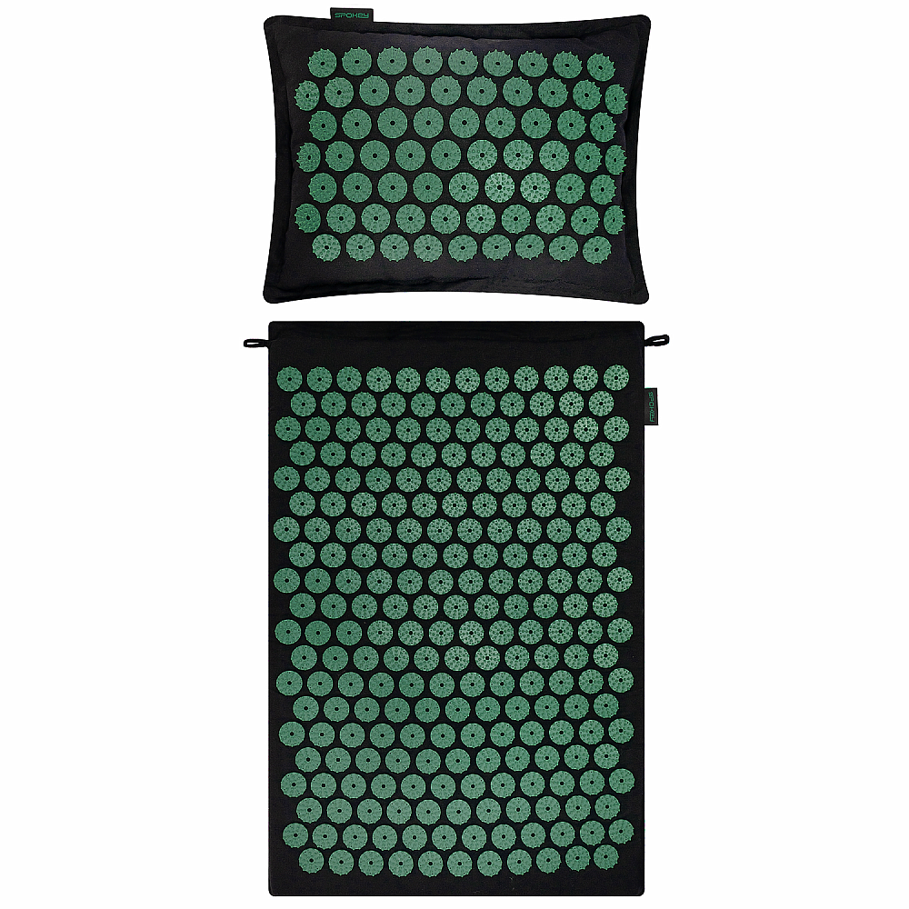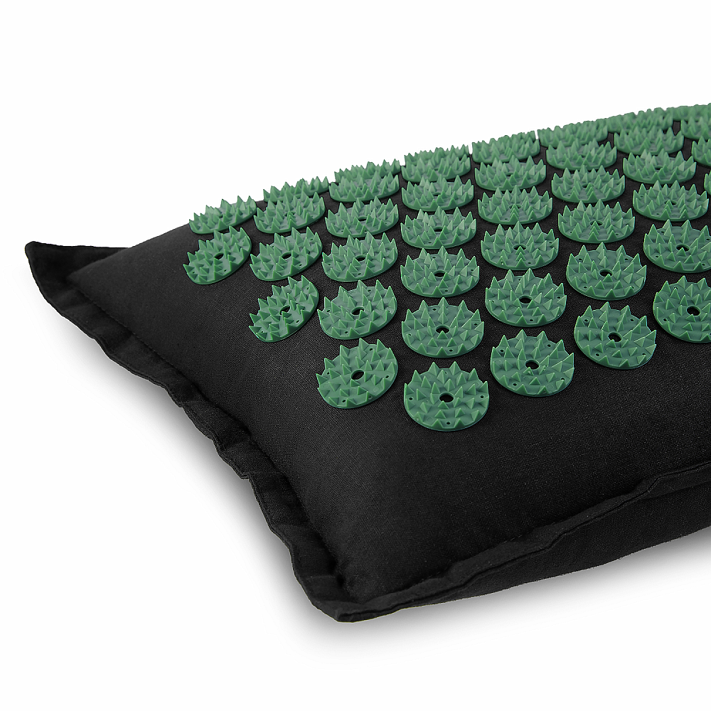 Spokey AKUMAT Masážní set: podložka s výstupky, inspirovaná akupresurou + polštář, 66 x 42 cm, zelený