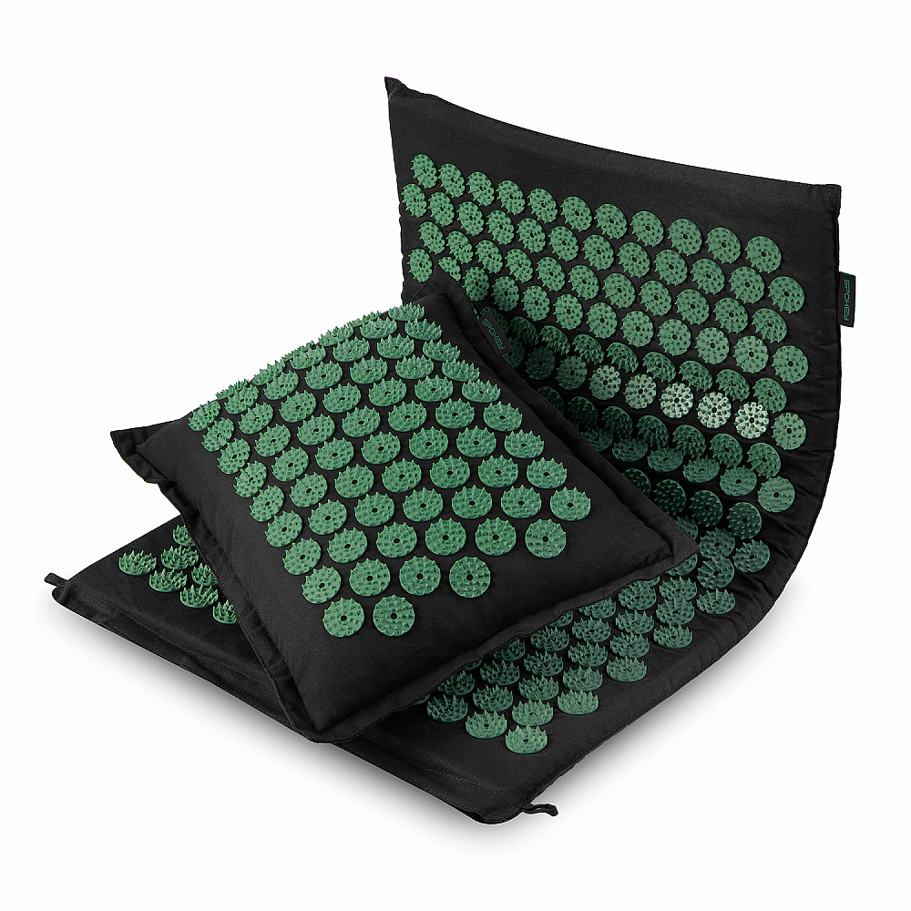 Akupresurní Sada AKUMAT pro bodovou automasáž se skládá z podložky a polštáře se speciálně tvarovanými hroty a je ideální volbou pro ty, kteří chtějí snížit svalové napětí, zbavit se bolesti a zlepšit svou pohodu. Masáž hroty stimuluje tvorbu endorfinů, podporuje relaxaci a zpevňuje pokožku, čímž ovlivňuje stav celého těla.
