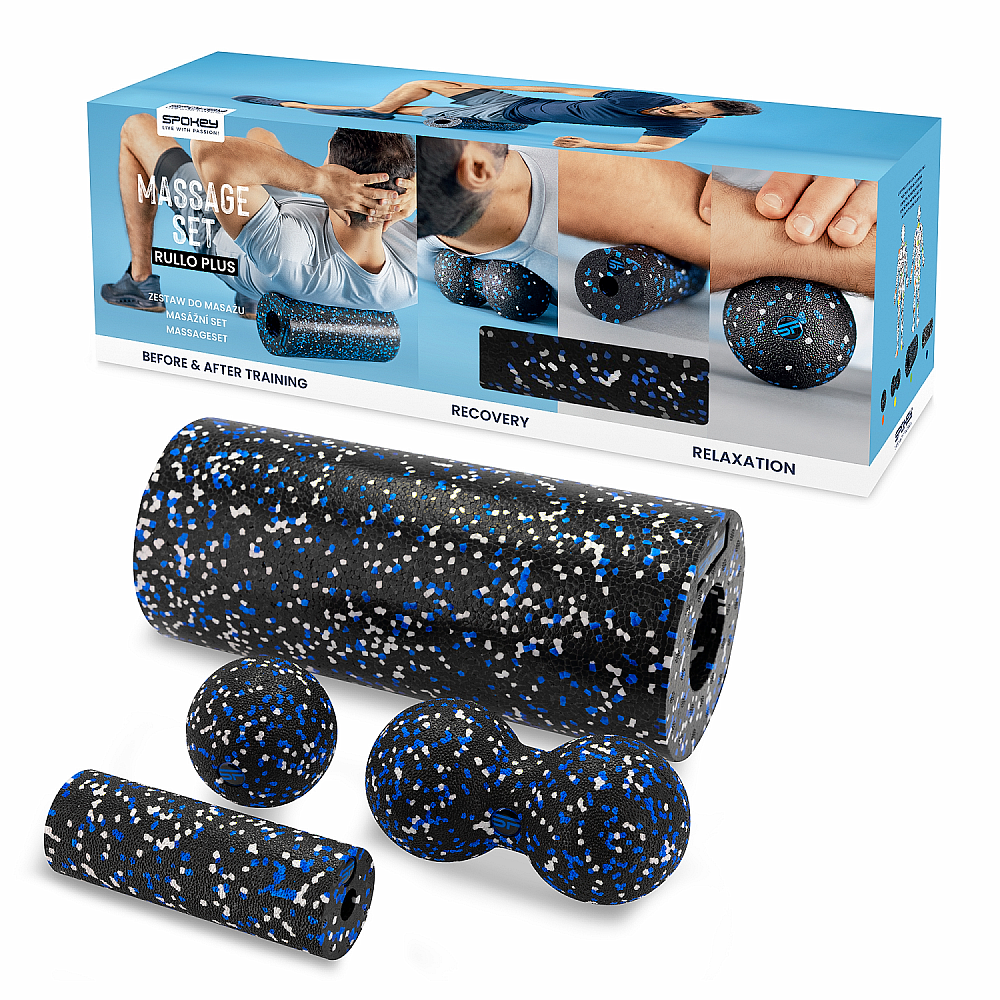 Sadu Spokey RULLO PLUS si zamiluje každý, kdo si chce po tréninku protáhnout a zregenerovat tělo. Sada obsahuje válec, masážní míček, mini váleček a dvojitý masážní míček. Použijte je k uvolnění napjatých svalů a uvolnění nahromaděného napětí. Celá sada je vyrobena z odolné pěny EPP, díky čemuž je odolná i vůči velké zátěži a deformaci.