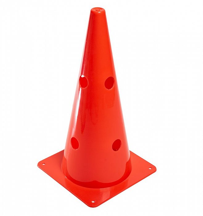 Sportovní děrovaný vymezovací plastový kužel ve více barevných provedeních pro označení terénu během her nebo při sportovních trénincích. Kužel s otvory je vhodný jako tréninková pomůcka do škol, školek, oddílů nebo sportovních klubů pro zlepšení kondice a techniky hráčů.