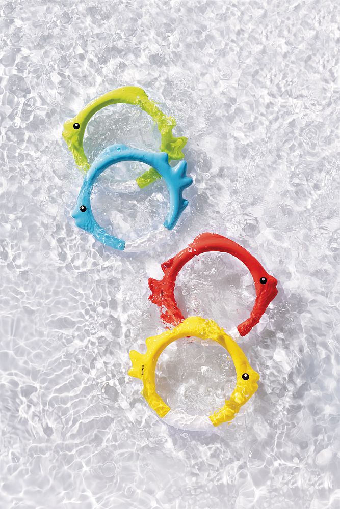 Kroužky pro potápění Intex se po vhození do bazénku „postaví“ na jeho dno. Ponořte se do letních radovánek s barevnými kroužky Intex a ukažte kolik jich dokážete vylovit.