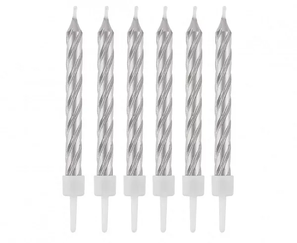 Dortové svíčky ve stříbrné barvě, vhodné na oslavy narozenin, výročí i jiné party.