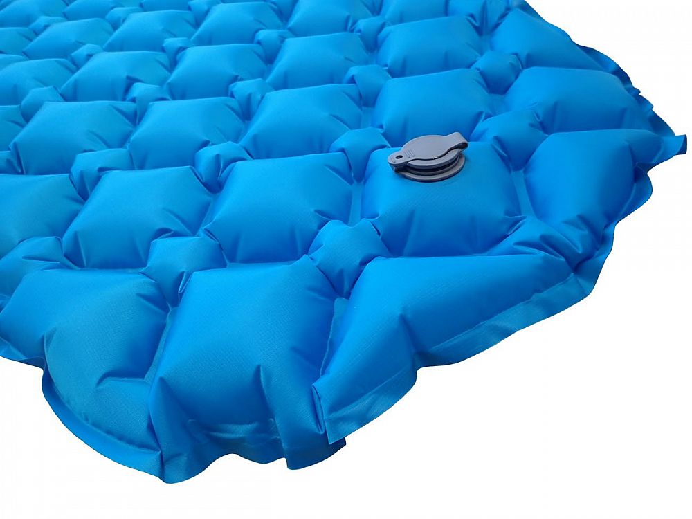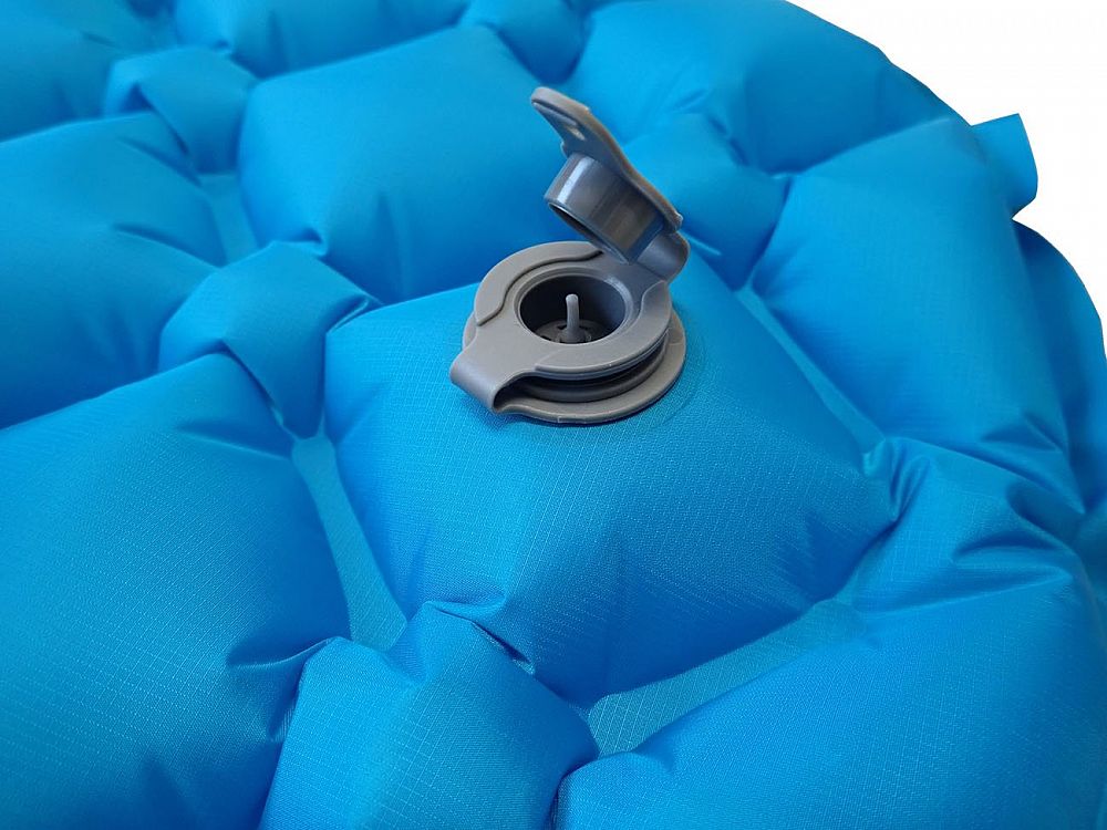 - Při přípravě na spaní nebo ležení se nafoukne přes velký ventil s membránou zadržujícím vzduch uvnitř karimatky.
