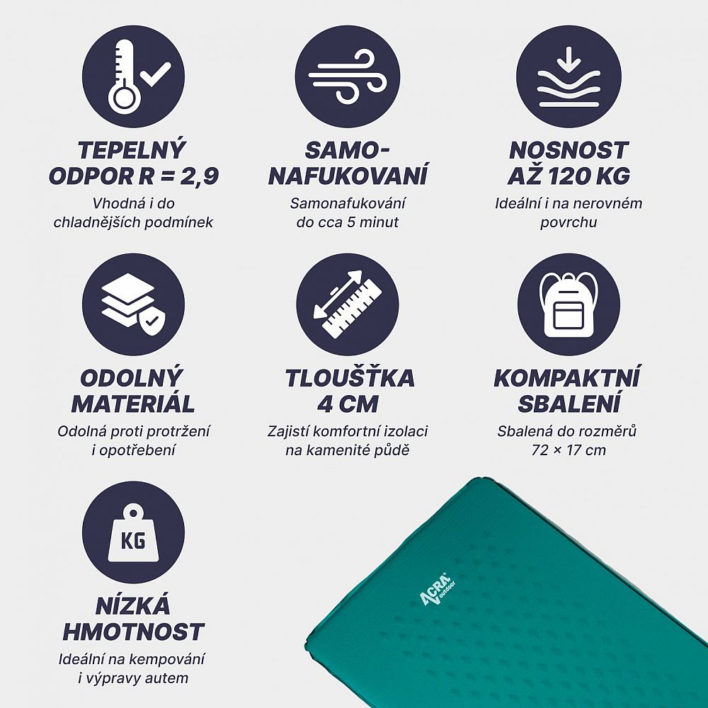 Popis: ACRAL140GRE samonafukovací komfortní karimatka zelenomodrá 4cm