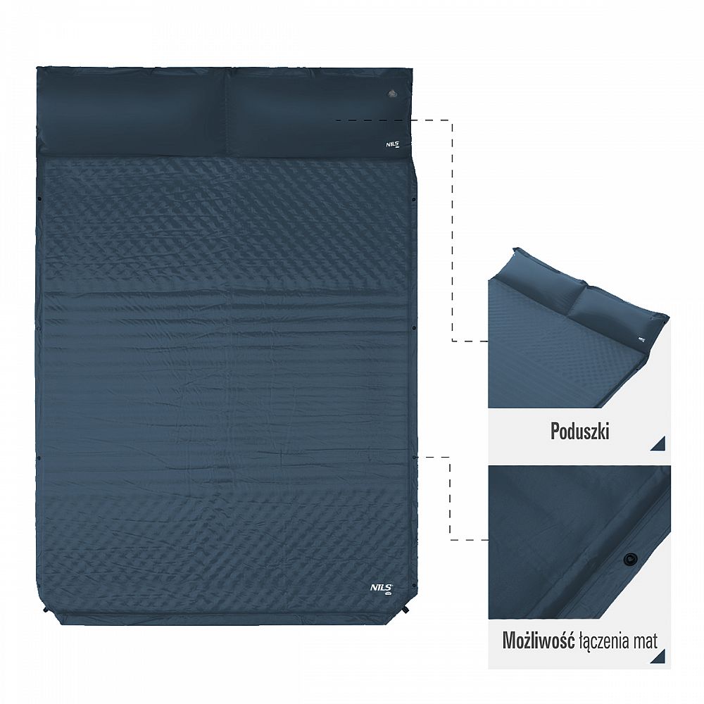 NC4060 NILS Camp je široká samonafukovací karimatka pro dvě osoby, která představuje ideální řešení pro kempování, spaní ve stanu nebo relaxaci na pláži. Nabízí kombinaci pohodlí, jednoduchého použití a praktických detailů pro každou outdoorovou výpravu.