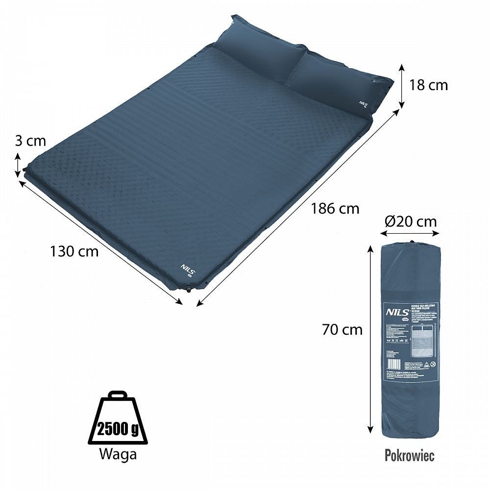 Popis: Samonafukovací dvouosobová karimatka NILS CAMP NC4060 šedá