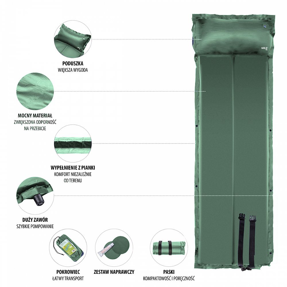 Popis: Samonafukovací karimatka NILS Camp NC4008 zelená