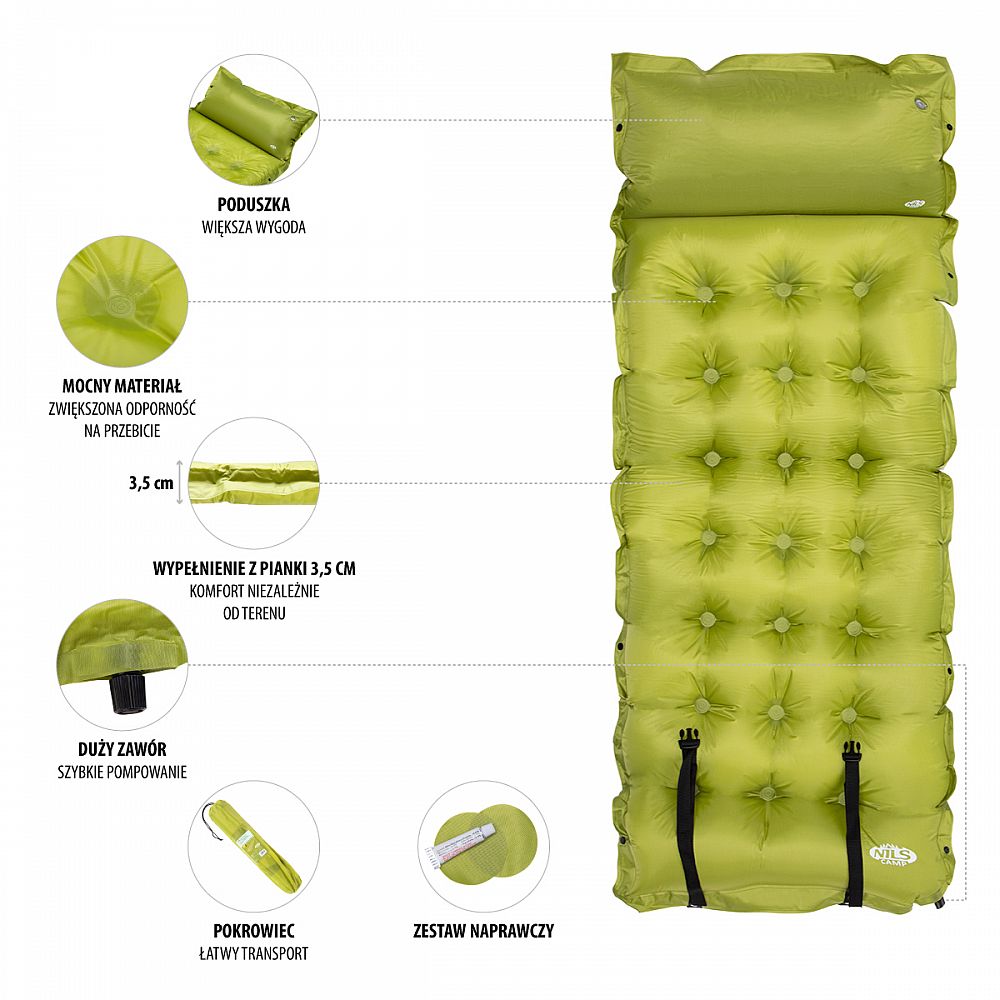 Popis: Samonafukovací karimatka NILS Camp NC4018 zelená