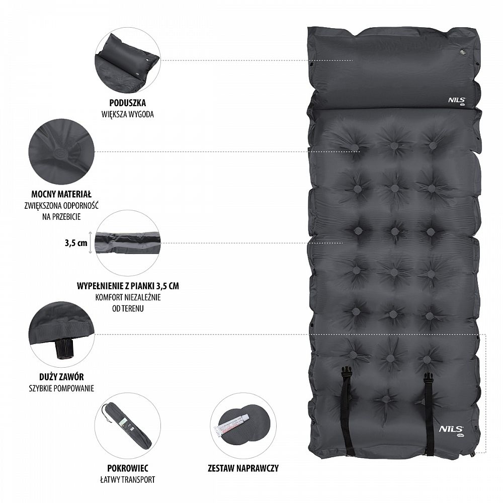 Popis: Samonafukovací karimatka NILS Camp NC4018 tm.šedá