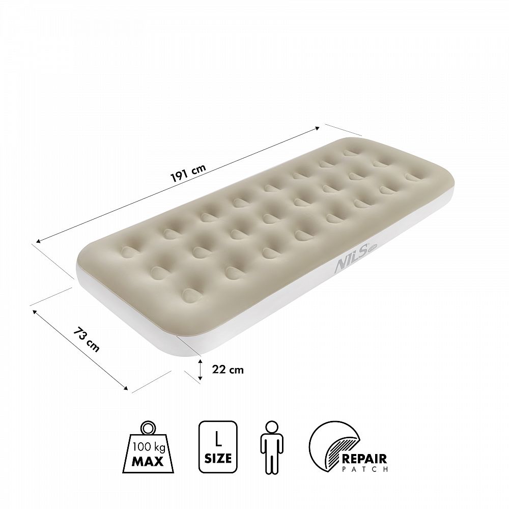 Popis: Nafukovací matrace NILS Camp NC2801 béžová 191x73x22 cm