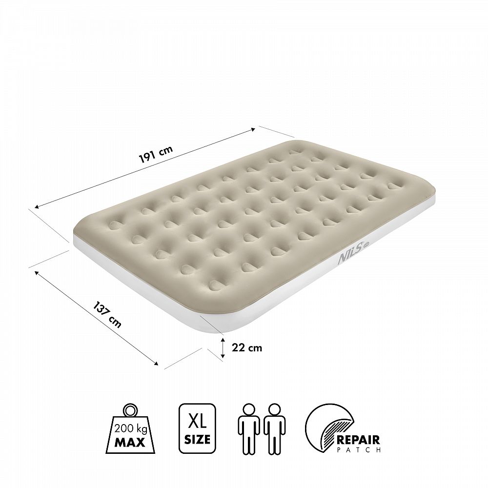 Popis: Nafukovací matrace NILS Camp NC2802 béžová 191x137x22 cm