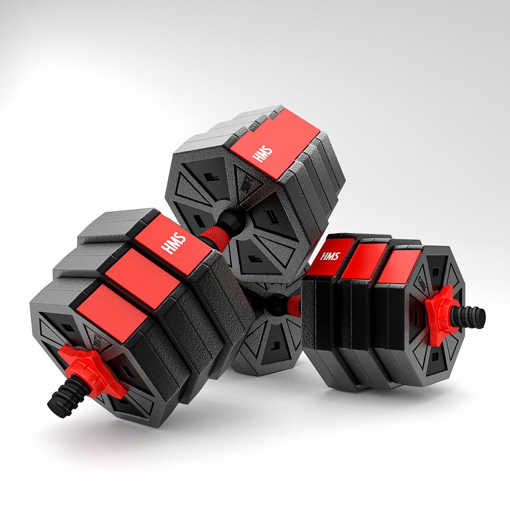 Kompletní nakládací sada dvou jednoručních a jedné obouruční činky o celkové hmotnosti 20 kilogramů, to je HMS SGC20. Nakládací činky patří ke klasickému vybavení každé domácí posilovny.