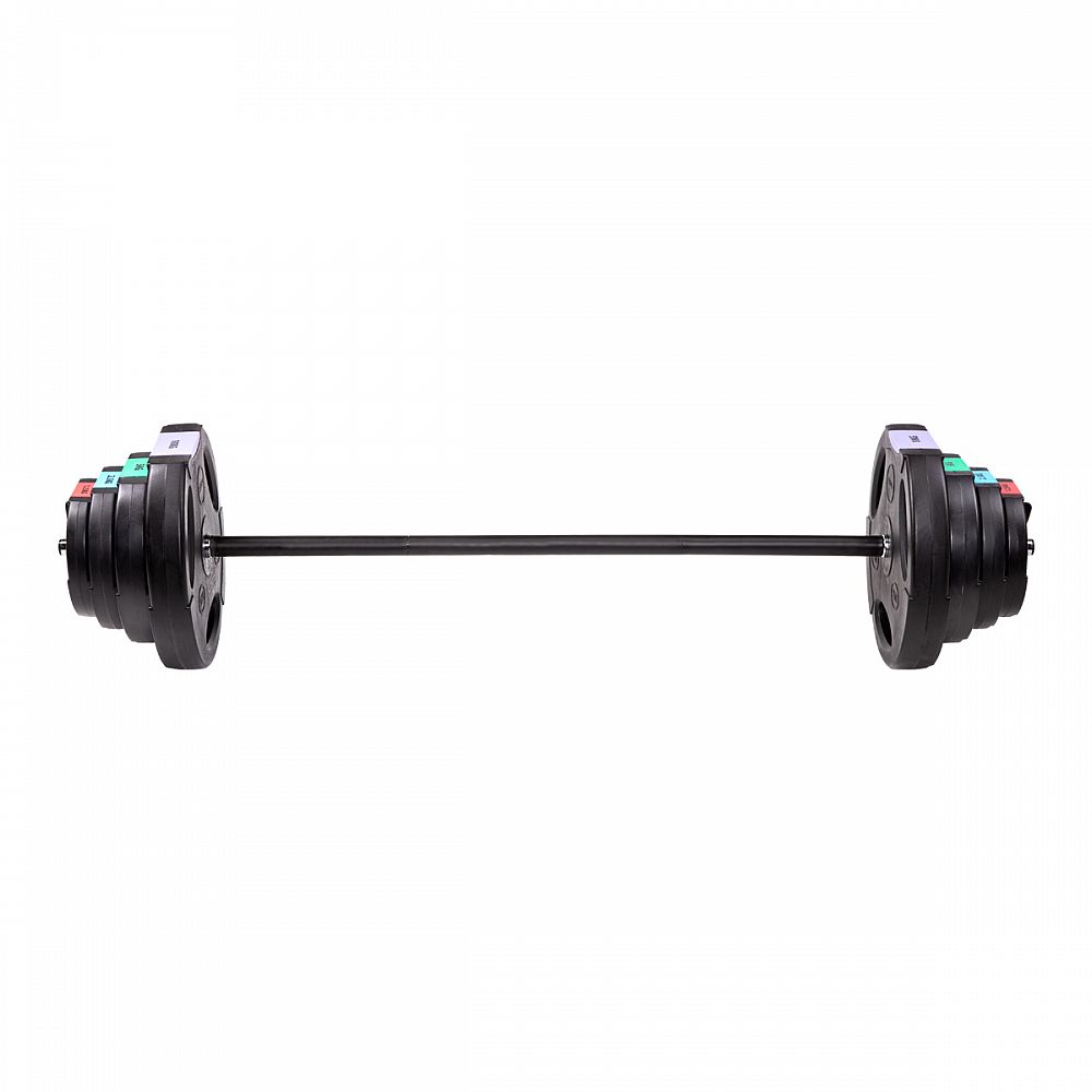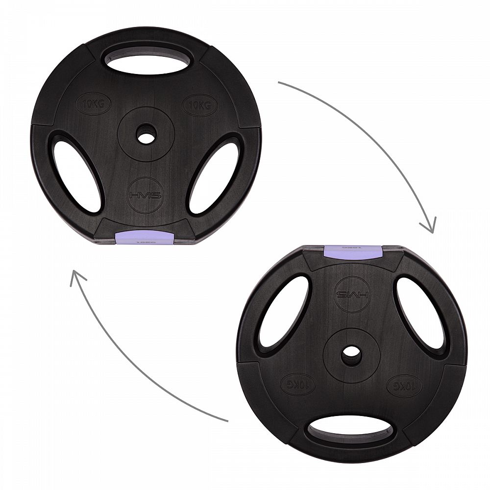 Kotouče jsou vyrobeny z trvdého plastu, který je vyplněn cementem. Obouruční osa je tvořena ze tří částí, které se do sebe skládají pomocí šroubení. Nakládací trny jsou hladké a závaží se zajišťuje pružinovými svorkami.