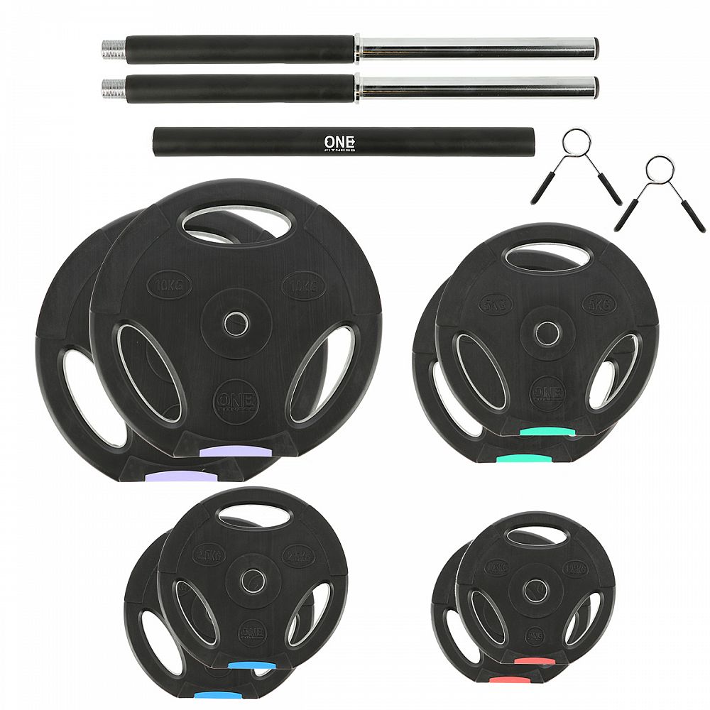 Kompletní sada obouruční, nakládací činky o celkové hmotnosti 42 kilogramů, to je ONE Fitness GSPO40. Nakládací činky patří ke klasickému vybavení každé domácí posilovny.