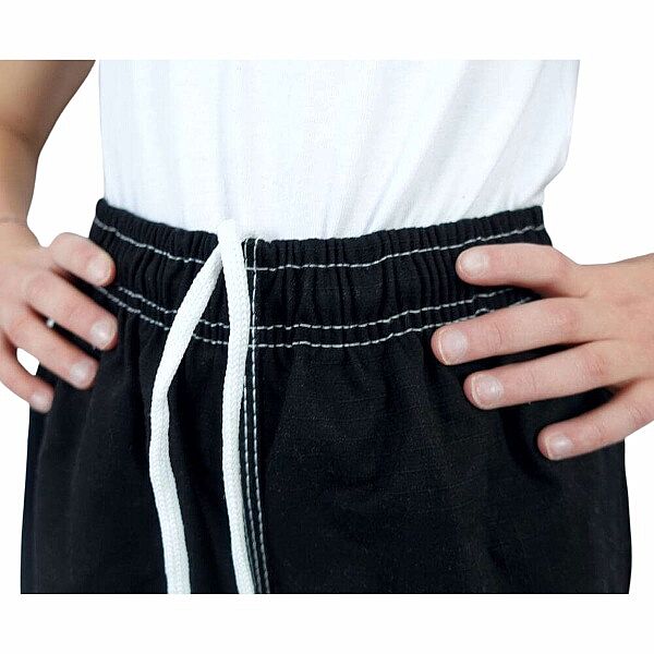 Kalhoty kimona jsou vyrobeny z lehkého materiálu a jsou opatřeny pružným pasem doplněného o šňůrku, takže se dokonale přizpůsobí každé postavě a při cvičení nesklouzávají dolů. Kalhoty jsou zesílené v oblasti rozkroku a kolen, aby byla zajištěna jejich maximální odolnost.
