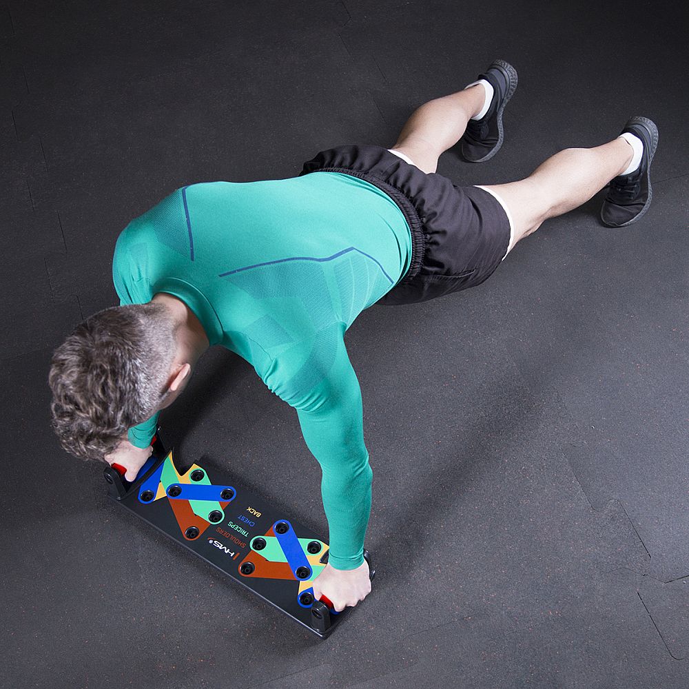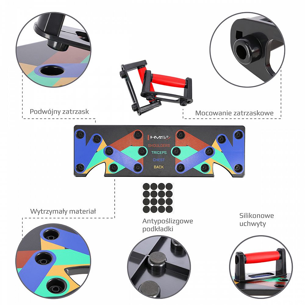 PU10 HMS je multifunkční, skládací deska, která umožňuje variabilní trénink kliků. Deska je symetricky rozdělena na 2 poloviny. PU10 obsahuje 5 párů otvorů pro umístění dodávaných podpěr. Každý pár otvorů umožňuje trénink pod jiným úhlem, kdy se procvičuje jiná svalová skupina a to: