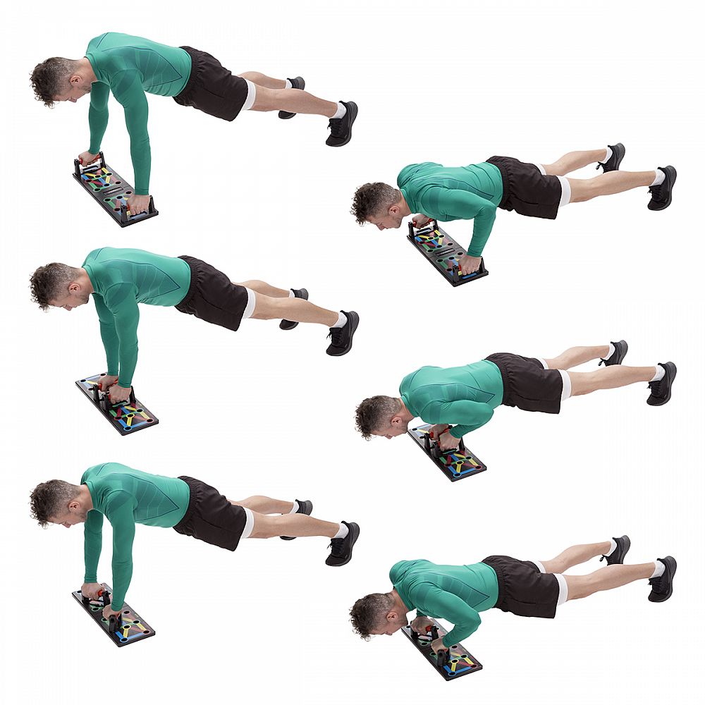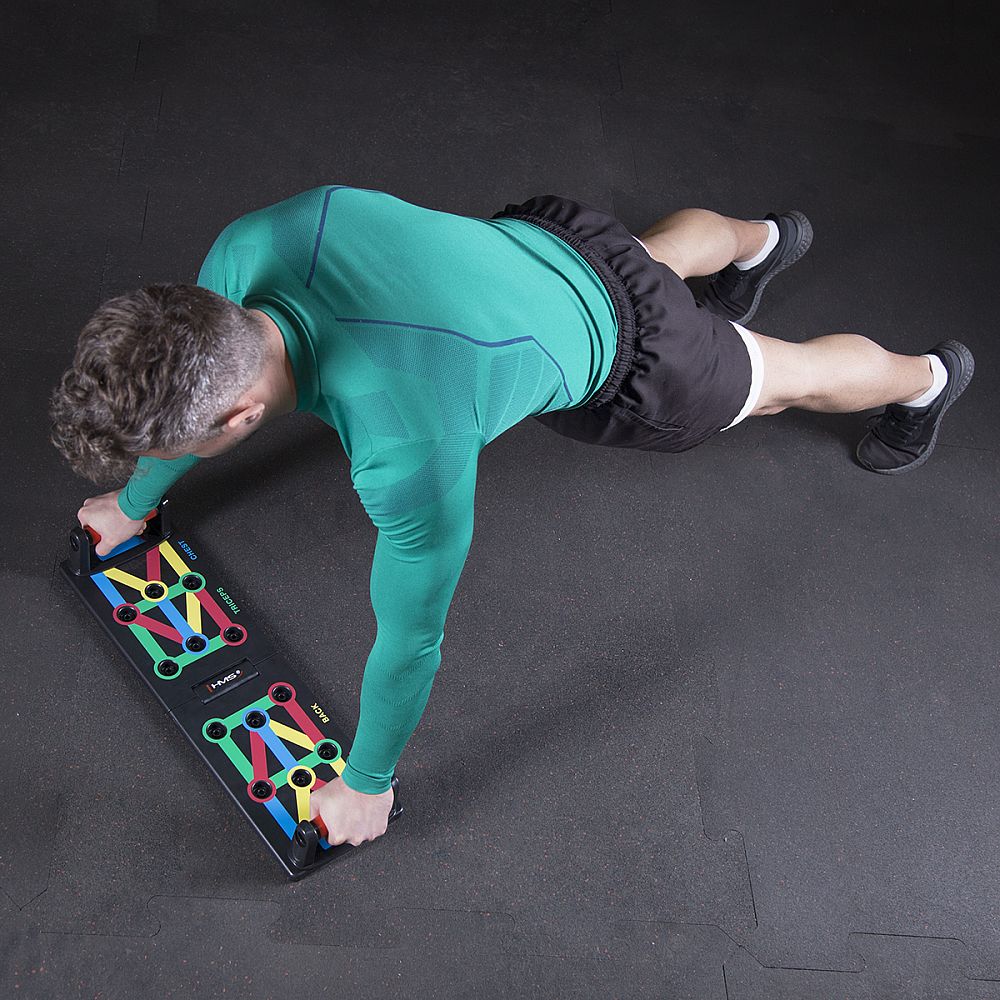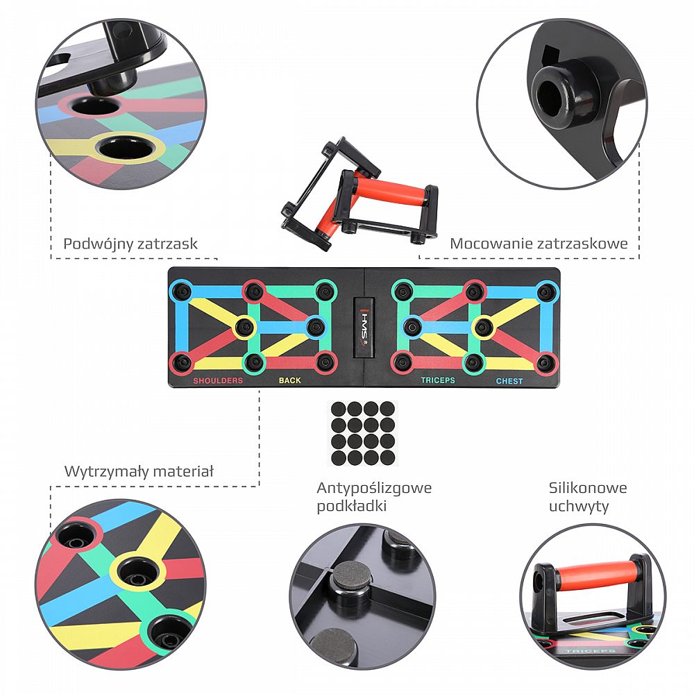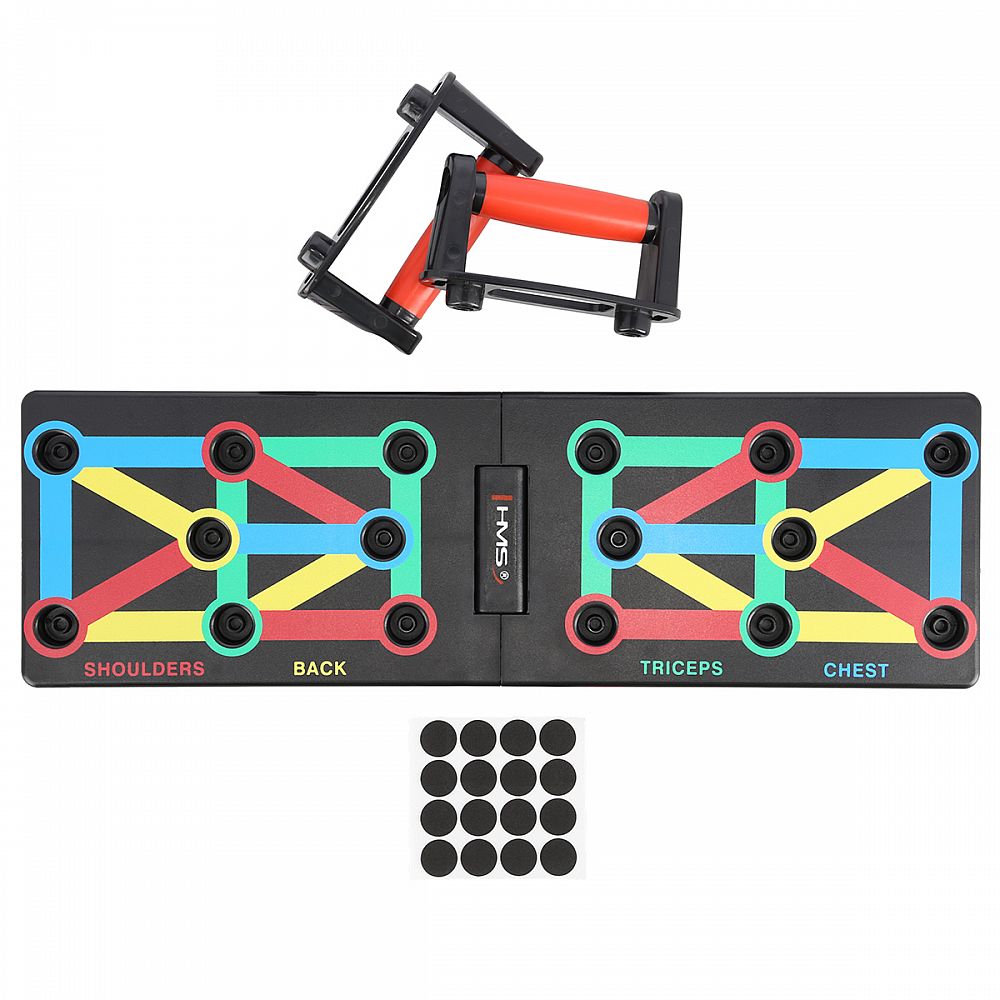 PU12 HMS je multifunkční, skládací deska, která umožňuje variabilní trénink kliků. Deska je symetricky rozdělena na 2 poloviny. PU12 obsahuje 8 párů otvorů pro umístění dodávaných podpěr. Každý pár otvorů umožňuje trénink pod jiným úhlem, kdy se procvičuje jiná svalová skupina a to: