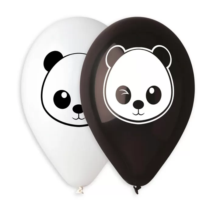 Latexové balonky s potiskem pandy. Dodáváno v mixu černé a bílé barvy, pokud si přejete pouze jednu barvu, můžete to uvést v komentáři.