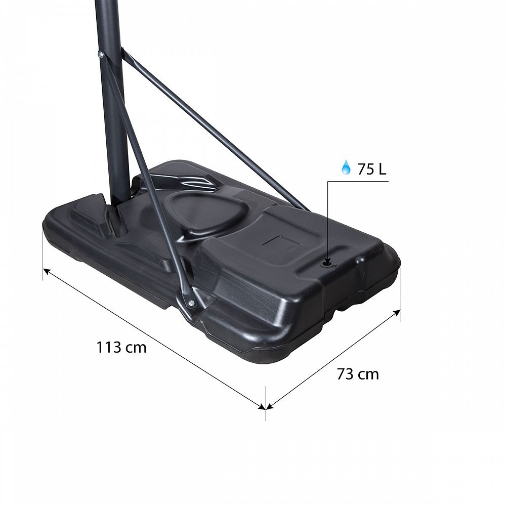 Koš ZDK020 byl vyroben z vysoce kvalitních a odolných materiálů, které zajišťují spolehlivost a dlouhou životnost i při náročném používání. Díky robustní konstrukci a odolnosti vůči povětrnostním vlivům je náš koš ideální pro vnitřní i venkovní použití. Deska o rozměrech 110 x 75 centimetrů je vyrobená z průhledného PVC a vydrží i ty nejtvrdší rány. Ocelová obruč o průměru 45 centimetrů je odpružená pomocí 2 silných pružin, toto řešení prodlužuje životnost koše a zajišťuje profesionální požitek ze hry. Do mohutné základny o rozměrech 113 x 73 centimetrů se vejde 75 litrů vody pro maximální stabilitu koše. Pro dobrou mobilitu je základna osazena válečky pro snadné přesouvání.