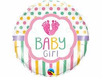 Fóliový balónek Kruh - Baby girl krůčky 46cm
