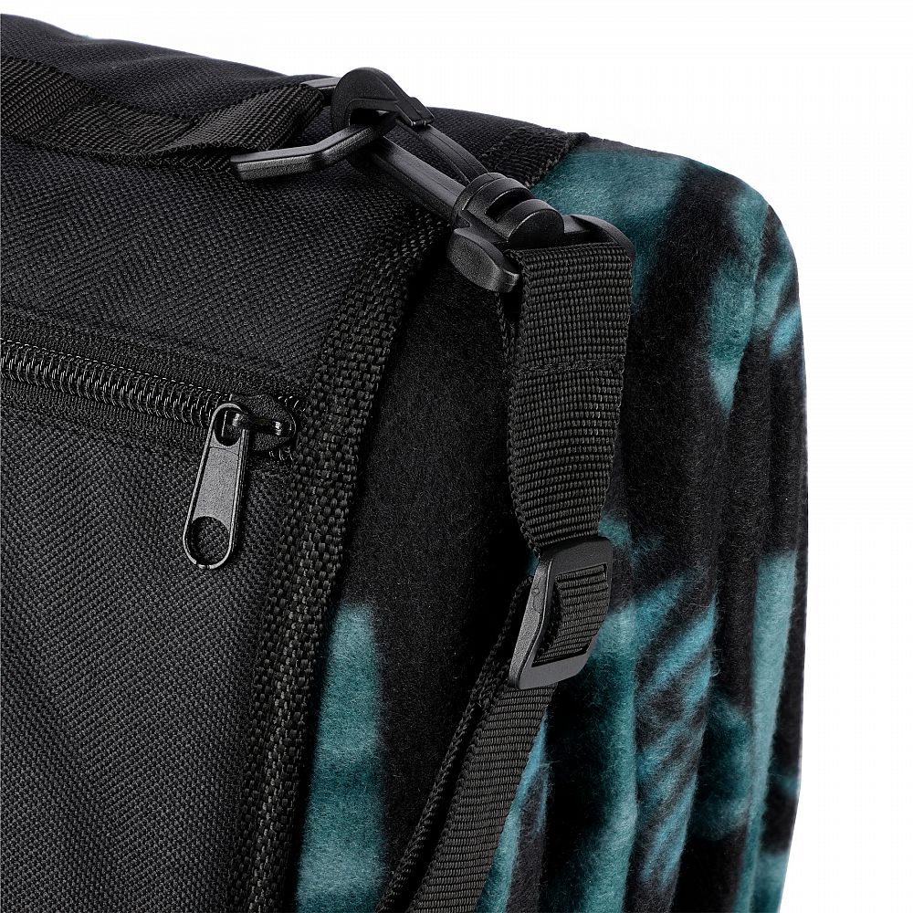 Deku lze snadno složit do praktické "tašky". Klopa se suchým zipem zabraňuje jejímu náhodnému rozbalení a nastavitelný popruh přes rameno a madlo umožňují deku pohodlně přenášet.