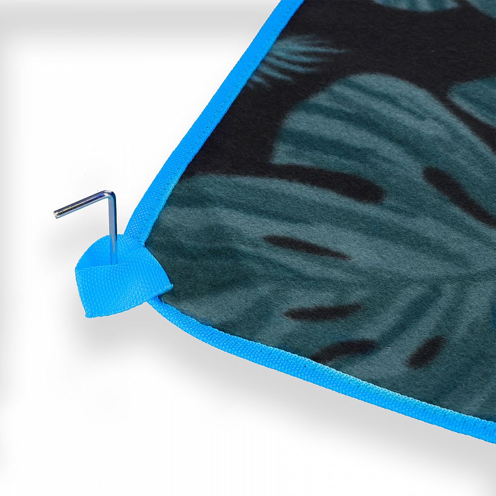 V každém rohu deky se nachází praktické očko pro připevnění deky k podkladku pomocí stanových kolíků, které jsou součástí balení, deka se pak neshrnuje a i ve větru leží na svém místě.
