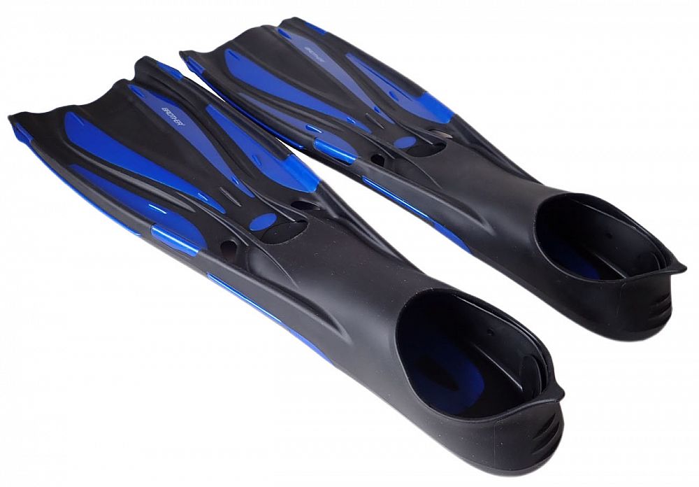 Ploutve BROTHER – gumová botička, vak pro snadné přenášení, vel. 42-43. Ploutve mají gumové pružné výztuhy pro lepší proudění vody. V barvě tm. modré.