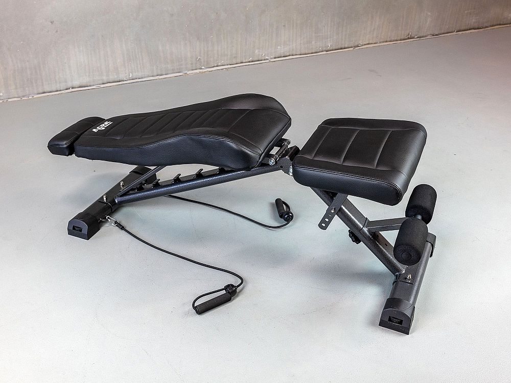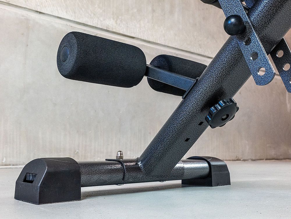 - Nastavitelnost: Lavice nabízí několik úrovní nastavení opěrky zad, sedáku a opěrky nohou, což umožňuje provádět širokou škálu cviků.