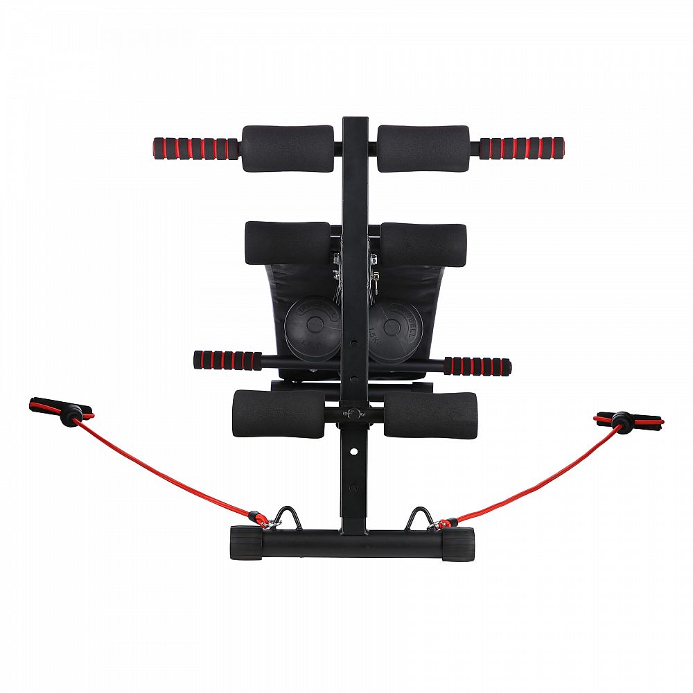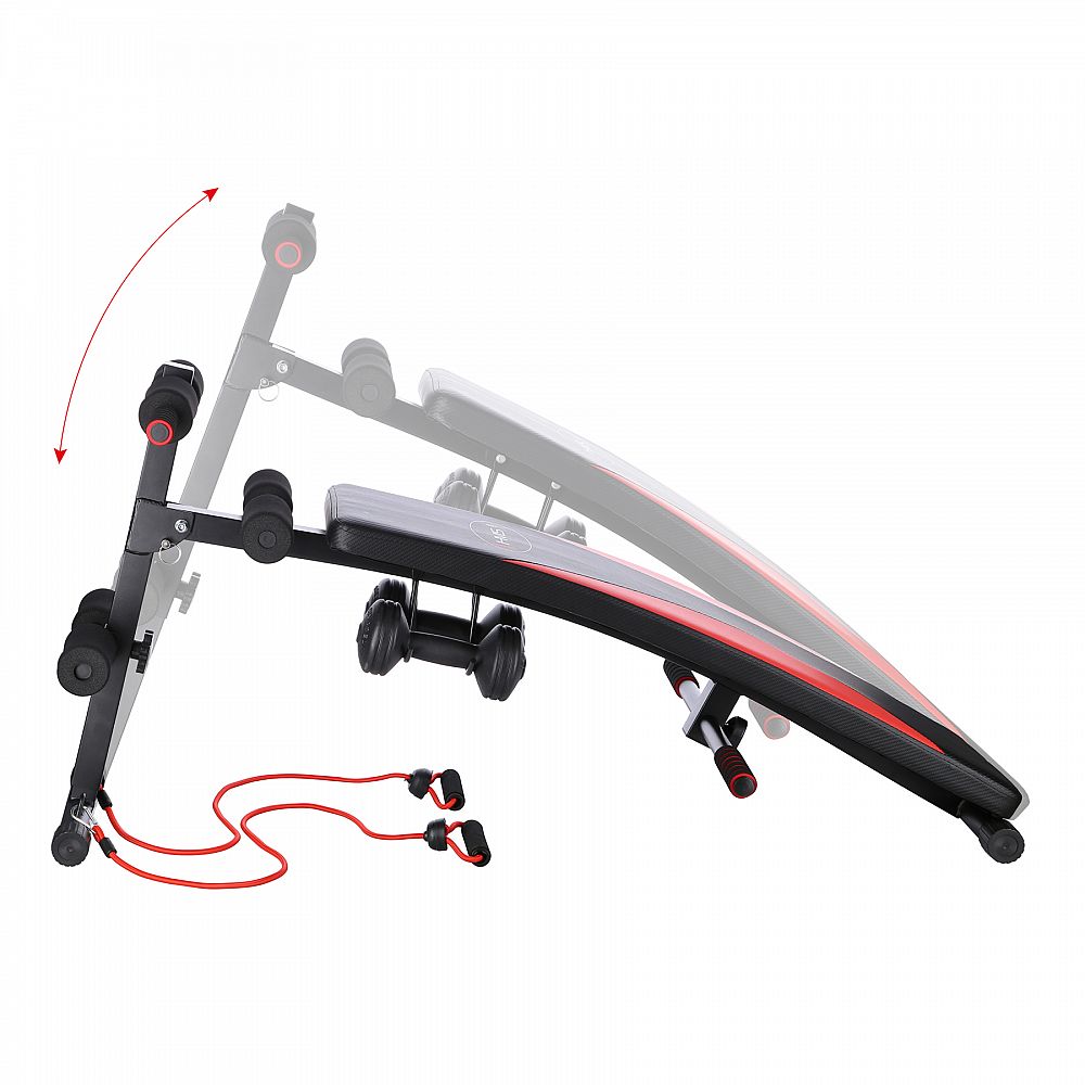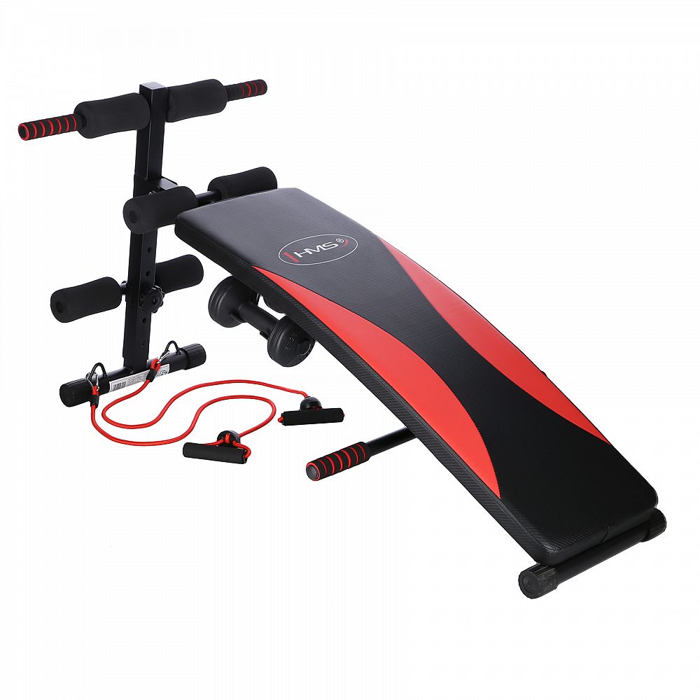 Šikmá lavička se závažím určena pro domácí použití. Je určena k tréninku břišních svalů, boků a páteře. Díky vinylovým činkám může uživatel provádět trénink horní poloviny těla.
