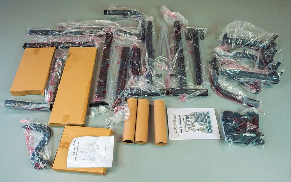 - Sestava se skládá zvlášť z lavice a stojanu, obě části jsou spojené do jednoho celku.