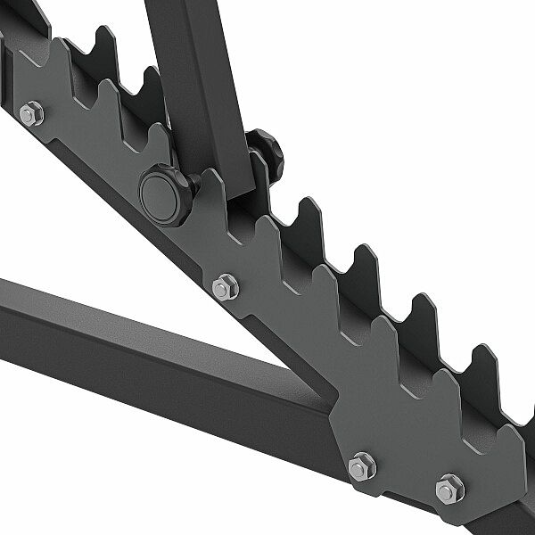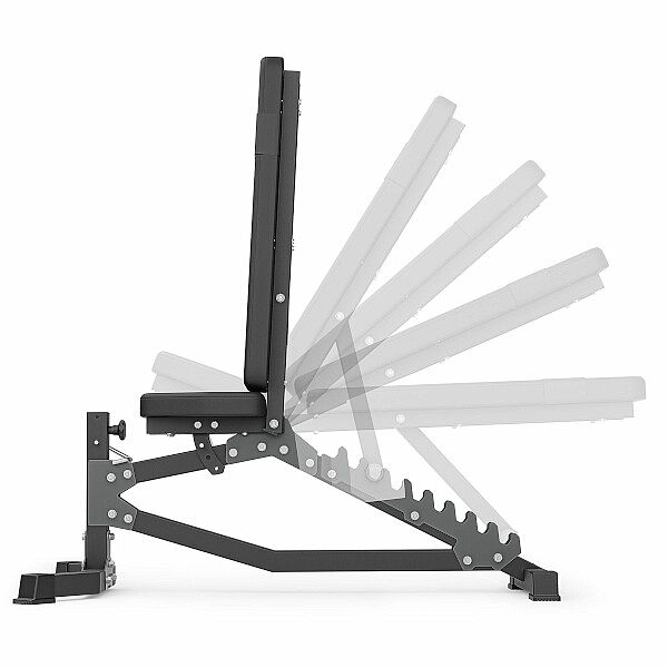 Variabilní, posilovací lavice MARBO Sport MS-L102 ve verzi 2.0 je dovedena téměř k dokonalosti. Rám je vyroben na precizních CNC strojích z ocelových profilů o rozměru 50 x 50 x 2 milimetry, tento postup výroby zaručuje vysokou přesnost, stabilitu a nosnost výsledné konstrukce. Laserem vypalované profily zarážek umožňují opravdu precizní nastavení zádové opěry do 10-ti poloh, tato jemná regulace umožňuje přizpůsobení posedu opravdu kterémukoliv cviku. Sedák lze nastavit do 3 poloh a jeho regulace se provádí pomocí čepu. Variabilita nastavení je v rozsahu od téměř 90-ti stupňové "židle" až po šikmou lavici s úhlem -21°. Lavici MS-L102 2.0 lze v kombinace se stojanem pod velkou činku použít také k silovému tréninku, nosnost lavice je 300 kilogramů. Polstrování je opatřeno dvojitými švy pro maximální pevnost. V nejnamáhanějším místě je zádová opěra opatřena druhou vrstvou kůže s logem MARBO Sport. Koncovky stabilizátorů jsou vyrobeny ze speciální směsi gumy, která zajišťuje ještě lepší stabilitu a ochranu podlahy než u předchozí generace lavic.