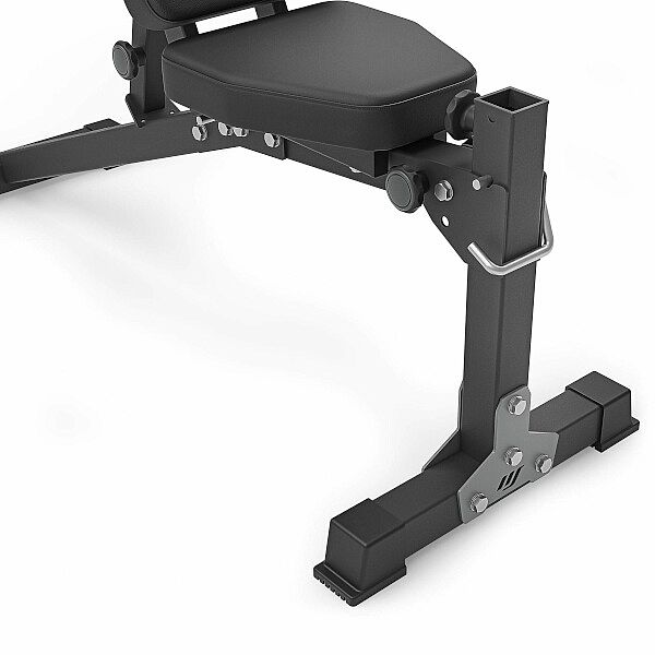 Variabilní, posilovací lavice MARBO Sport MS-L114 ve verzi 2.0. Rám je vyroben na precizních CNC strojích z ocelových profilů o rozměru 50 x 50 x 2 milimetry, tento postup výroby zaručuje vysokou přesnost, stabilitu a nosnost výsledné konstrukce. Laserem vypalované otvory umožňují opravdu precizní nastavení zádové opěry do 8-mi poloh, tato jemná regulace umožňuje přizpůsobení posedu opravdu kterémukoliv cviku.