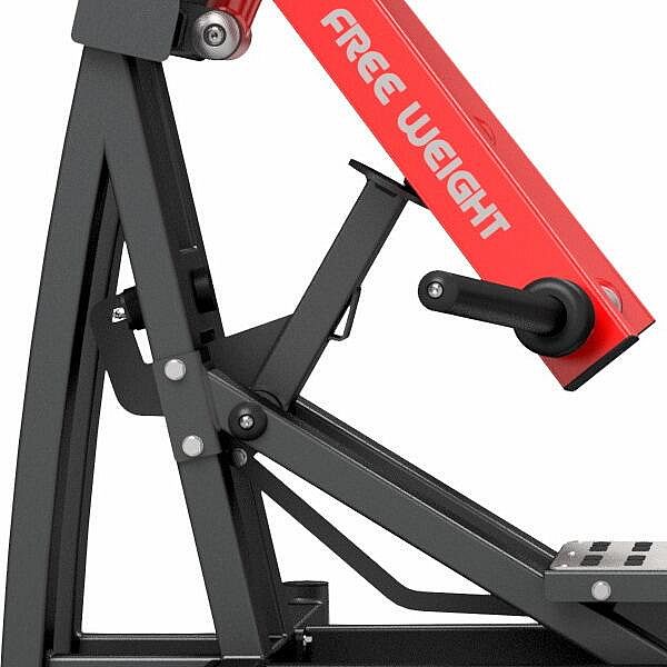 Leg press MARBO MF-U013 je vybaven systémem "dálkového ovládání" jistící vzpěry. Ta je propojena s madly pod sedadlem, takže cvičení je výdy bezpečné. Hlavní nášlapové plochy jsou vyrobeny z nerezové dosky doplněné gumou. Polostrování je vyrobeno z odolné, syntetické kůže, dvakrát prošité režnou nití COATS a je vyplněno vrstvou tvrdé pěny pro maximální komfort.
