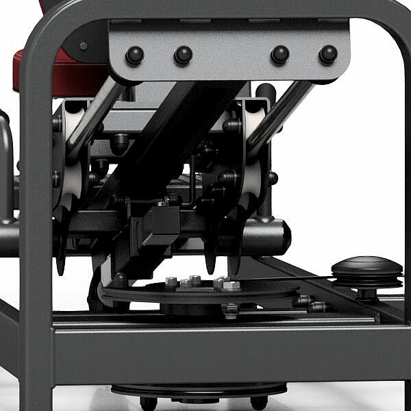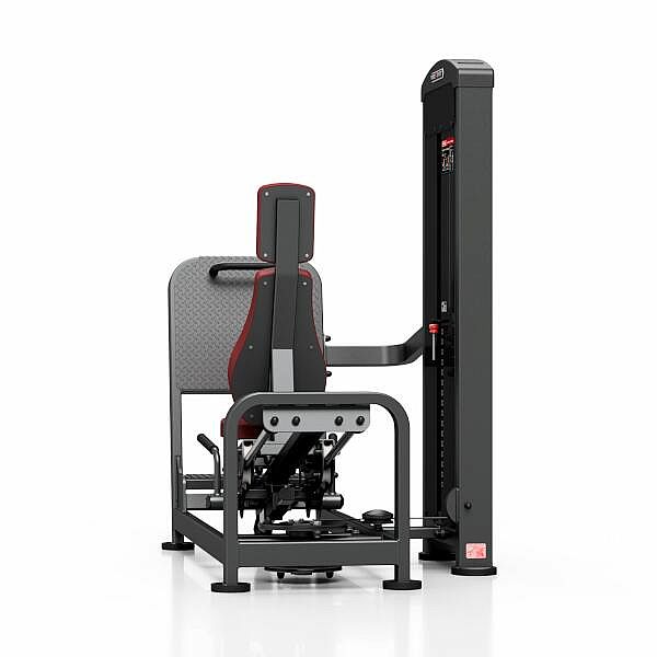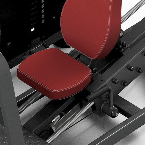 Leg Press MARBO MP-U217 je nekompromisní, profesionální vybavení pro Vaší posilovnu. Pro výrobu byly zvoleny ocelové profily 120x60x3mm a 80x40x3mm, které zaručují nečekanou trvanlivost. Zátěž tvoří 16ks 10kg cihel. Celková váha závaží dodávána se strojem je tedy 160kg. Stroj je vybaven důmyslným systémem regulace startovní pozice sedadla, díky kterému dokážete sjet opravdu nízko a blízko k opěrně desce z drážkovaného plechu. Ta je navic vybavena madlem pro snadné opuštění stroje. Polstrovaní je ze syntetické kůže sešité režnou nití značky COATS vyplněné tvrdou pěnou, to celé ja na 3mm hrubé, ocelové desce. Tichý chod zajištuje zakrytování černým plastem, z přední části je kryt opatřen průhledem pro snadné nastavení požadovaného počtu cihel. Stroj je navíc opatřen velikou samolepkou, která instruuje cvičence, jaké cviky jdou na stroji provádět a které skupiny svalů daný cvik posiluje.