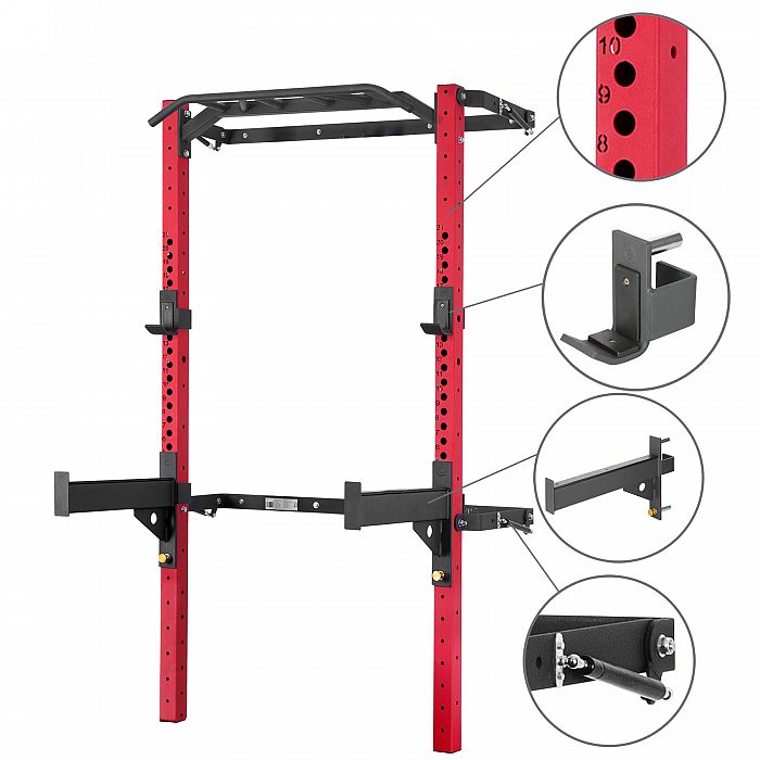 Popis: Multifunkční posilovací stojan - Power Rack HMS KLT22 červený