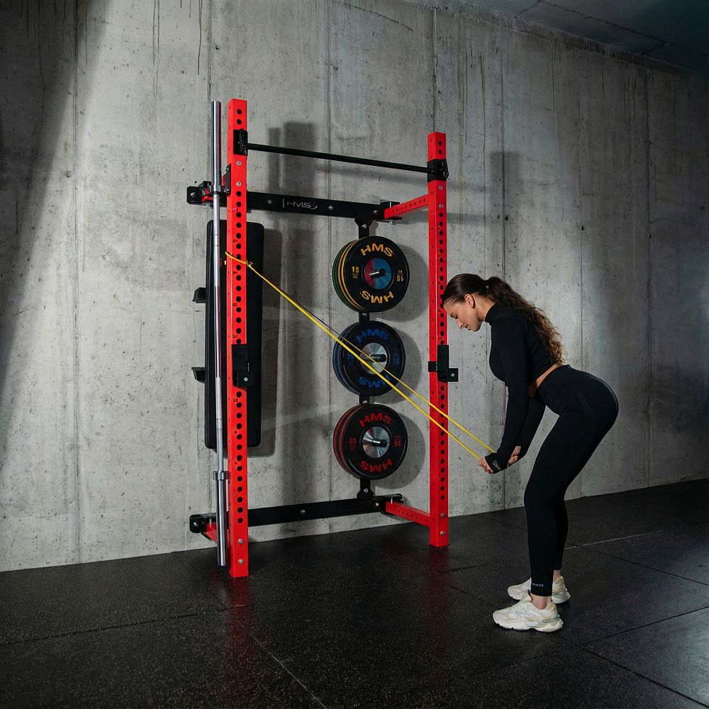 Multifunkční skládací posilovací stojan - Power Rack HMS KLT34 červený
