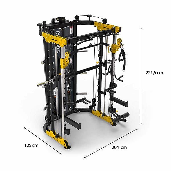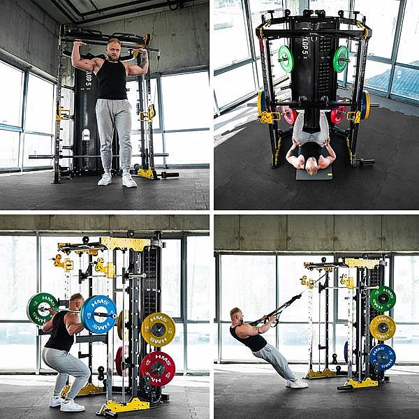 Multipress Cyklop 5 od společnosti HMS je zařízení pro lidi, kteří hledají nekompromisní kvalitu, bezpečnost a maximální funkčnost v jednom zařízení. Tento stroj umožňuje kompletní a efektivní silový trénink v jednom kompaktním provedení. Vybavení zahrnuje: