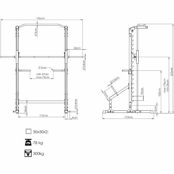 Multipress MS-U117 2.0 je určen pro všechny, kteří chtějí vybudovat kompletní posilovnu v jediném stroji. Díky adaptérům na dipy a kliky s nastavitelnou šířkou umožňuje přizpůsobit cvičení individuálním potřebám a úrovni pokročilosti. Pevná hrazda aktivuje svaly zad a paží, zatímco úchyty na odporové gumy přidávají zcela nové tréninkové možnosti. Jedná se o univerzální tréninkové centrum, které umožňuje realizovat propracované tréninkové plány bez nutnosti dalšího vybavení.