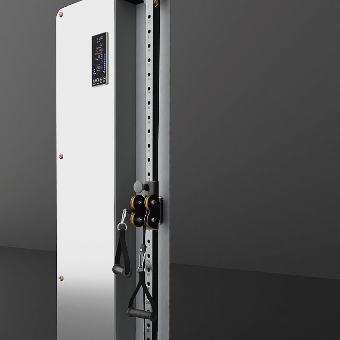 HMS BSP301 má 10stupňovou pneumatickou změnu zátěže od 5 do 30 kg (změna po 2,5 kg), která vám zajistí pohodlí a zlepší váš trénink. Zátěž můžete snadno měnit pomocí chytrého dotykového displeje, který ovládá vestavěný kompresor, který upravuje tlak ve válci a tím se mění výsledná zátěž přenášená na ocelová lana. Můžete si také nastavit výšku kladky, a to až ve 28 úrovních! Adaptéry jsou upevněny na karabinách, takže je můžete měnit a přizpůsobovat svým potřebám. Zdvojená kladka umožňuje trénink obou paží současně a nebo lze lana spojit a tím zdvojnásobit zátěž.