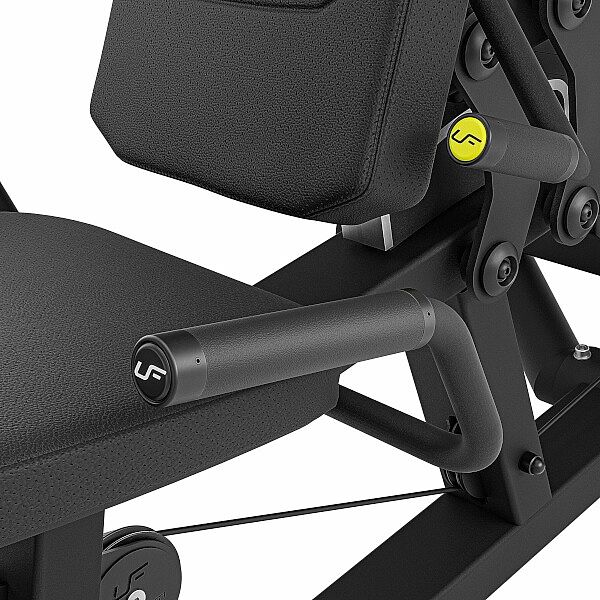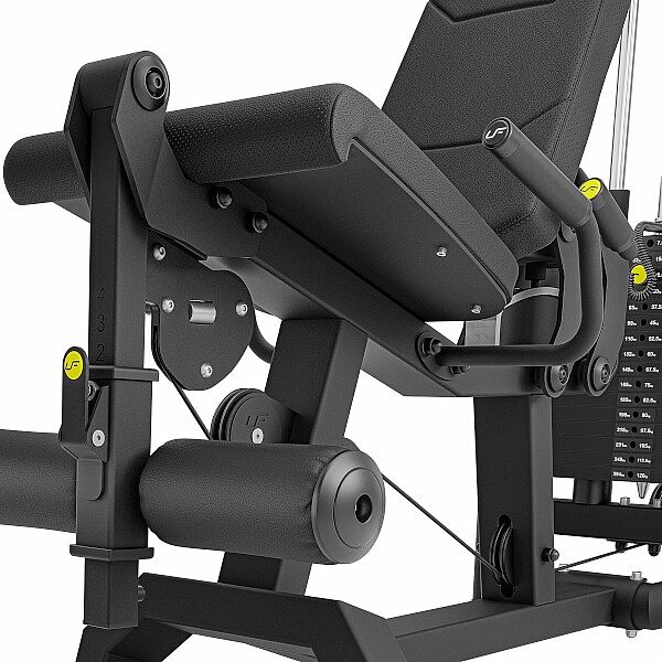 UpForm UF-022 má zádovou opěru nastavitelnou do 5-ti úrovní pomocí stlačení páky, změna polohy je snadná, protože váhu opěry odlehčuje pneumatický píst. Zarážka nohou je výškově nastavitelná do 4 poloh po stisku páky. Stanice tedy umožňuje perfektní přizpůsobení pracovního prostoru výšce a proporcím cvičence. Zásobník závaží obsahuje 16 cihel o hmotnosti 7,5 kilogramů, k dispozici tedy je 120 kilogramů zátěže. Jednotlivá závaží jsou opatřena nálepkou pro rychlou volbu požadované zátěže jak v kilogramech, tak v librách. Čep pro výběr hmotnosti je vyroben z hliníku a je připevněn ke kroucenému lanku, takže nehrozí jeho ztráta. Na sedák a opěru bylo použito perforované čalounění, které zajišťuje dostatečnou ventilaci a odvod vlhkosti. Na rámu se nachází štítek s ilustrací cviku, který lze na stanici provádět.
