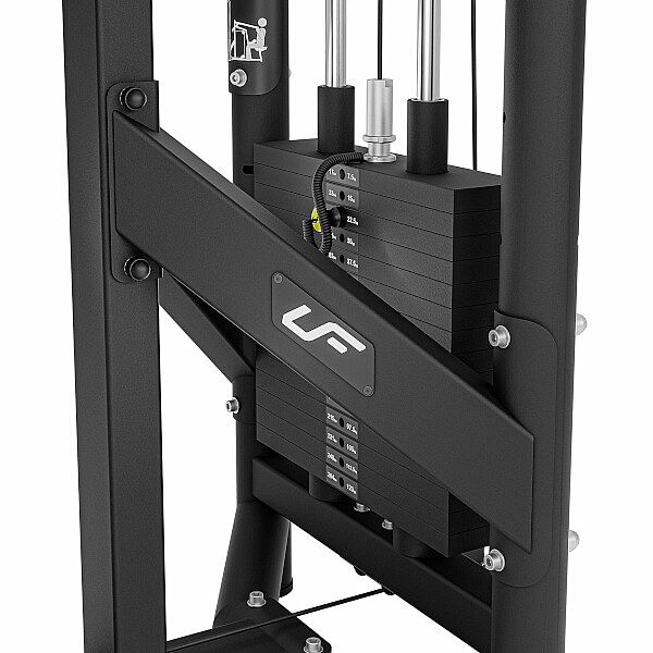 Stahování horní kladky UpForm UF-020 je profesionální tréninková věž určená pro náročné uživatele. Díky chytrému designu, velikosti zásobníku a okamžité změně zátěže je věž ideální pro silový a sportovní trénink. Konstrukcí je stanice určena pro použití v komerčních posilovnách, fitnesscentrech nebo klubech. Rám je vyroben z ocelových profilů 100 x 60 x 3 milimetry a ocelových trubek s profilem 60,3 x 3,2 mm a 76,1 x 3,2 milimetrů, které zaručují vysokou stabilitu konstrukce a její dlouhou životnost i při náročném trénování s plně využívanou sadou závaží.