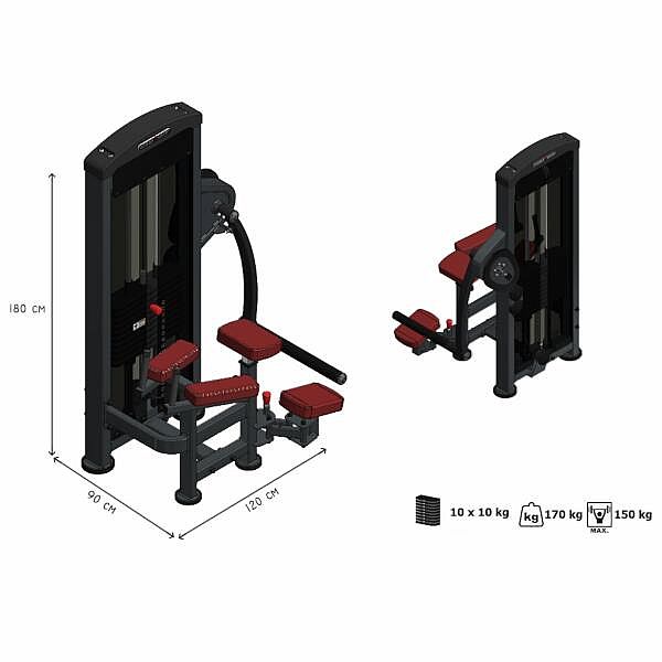 Posilovač hýžďových svalů MARBO MP-U222 je nekompromisní, profesionální vybavení pro Vaší posilovnu. Pro výrobu byly zvoleny ocelové profily 120x60x3mm a 80x40x3mm, které zaručují nečekanou trvanlivost. Zátěž tvoří 10ks 10kg cihel. Celková váha závaží dodávána se strojem je tedy 100kg a je možné ji rozšířit až na 160kg. Napínaní lanek se provádí regulací 4 šroubů na hlavním vodícím kole. Odpadá tak složité rozebírání stroje. Polstrovaní je ze syntetické kůže sešité režnou nití značky COATS vyplněné tvrdou pěnou, to celé ja na 3mm hrubé, ocelové desce. Tichý chod zajištuje zakrytování černým plastem, z přední části je kryt opatřen průhledem pro snadné nastavení požadovaného počtu cihel. Stroj je navíc opatřen velikou samolepkou, která instruuje cvičence, jaké cviky jdou na stroji provádět a které skupiny svalů daný cvik posiluje.