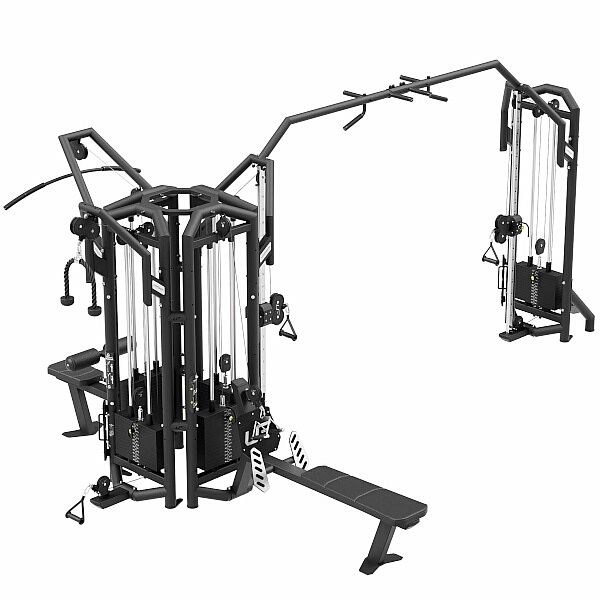Multifunkční posilovací věž UpForm UF-T003 je bezkompromisní sestava, která je složena ze 5-ti stanovišť. Jde o vrchní kladku se sedákem UpForm UF-003, spodní kladku s lavicí UpForm UF-004, bránu s posuvnými kladkami a hrazdou, vrchní a spodní kladku UpForm UF-002. Součástí dodávky pro montáž do multitoweru jsou dále 2 kusy spojovacího dílu UpForm UF-014 a 12 kusů spojovacích dílů UpForm UF-016.