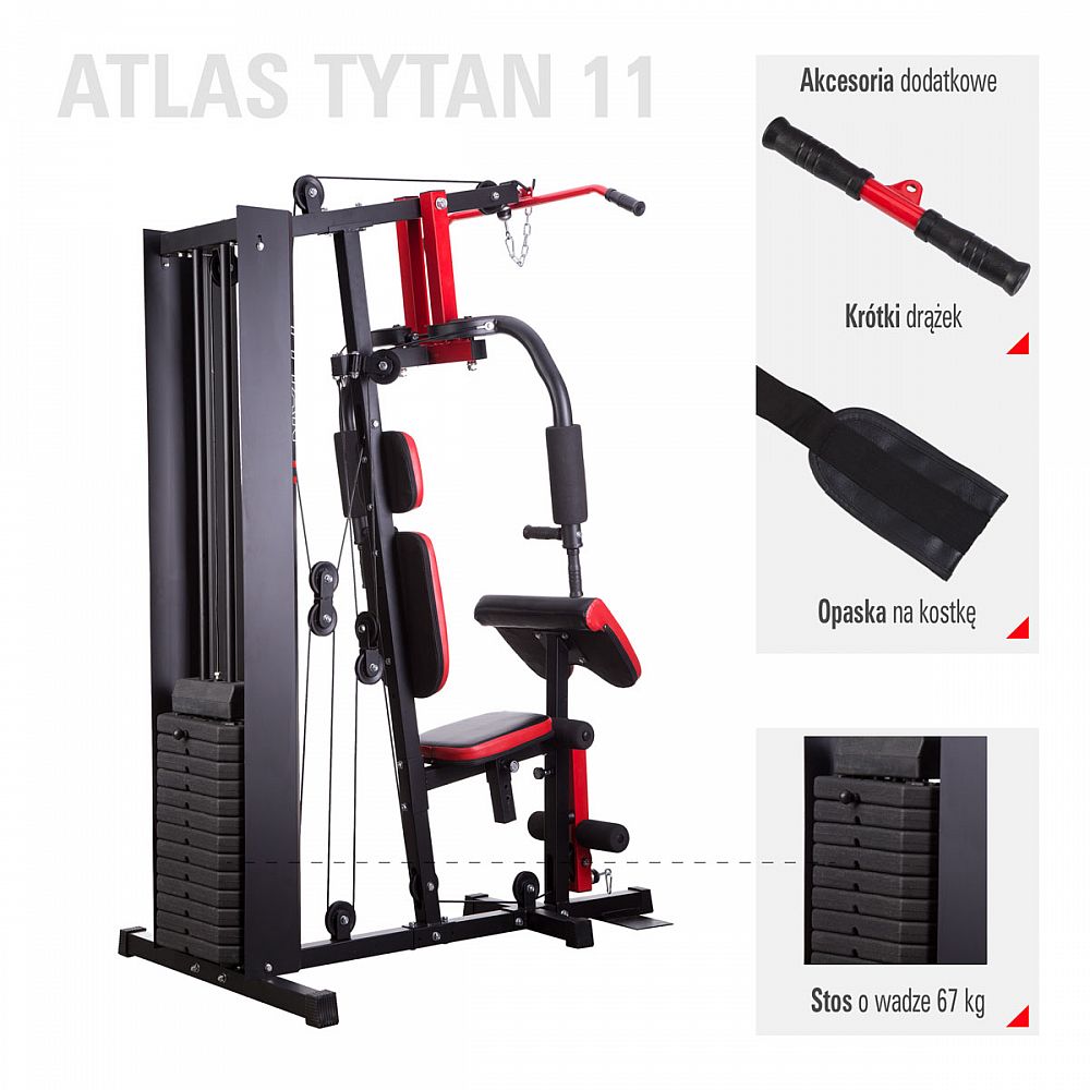 Tréninkem na Tytanu 11 můžeme posilovat téměř všechny svalové skupiny. Tlaky, motýlek, horní kladka, spodní kladka, modlitebník, hrazda a předkopávání nám umožňují trénovat svaly ramen, hrudníku, zad, horních a dolních končetin.