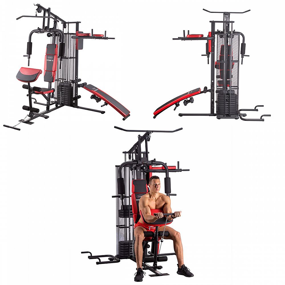 Sedáky a opěry věže HMS Tytan 12 jsou vyrobeny z vysoké vrstvy pěny ukryté pod extra pevným polstrováním v moderním, carbonovém vzhledu. Hlavní zádovou opěru tvoří 3 samostané panely pro pevné s pohodlné fržení těla. Tytan 12 nabízí komplexní trénink téměř všech svalových skupin. Ocelová konstrukce má nosnost 110 kilogramů.