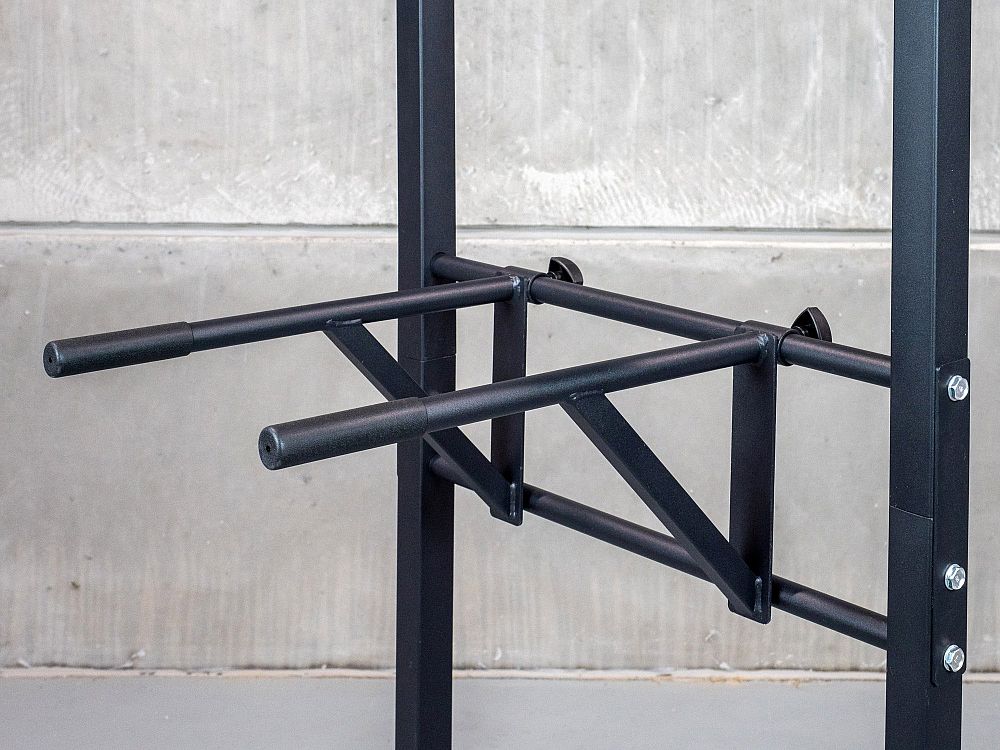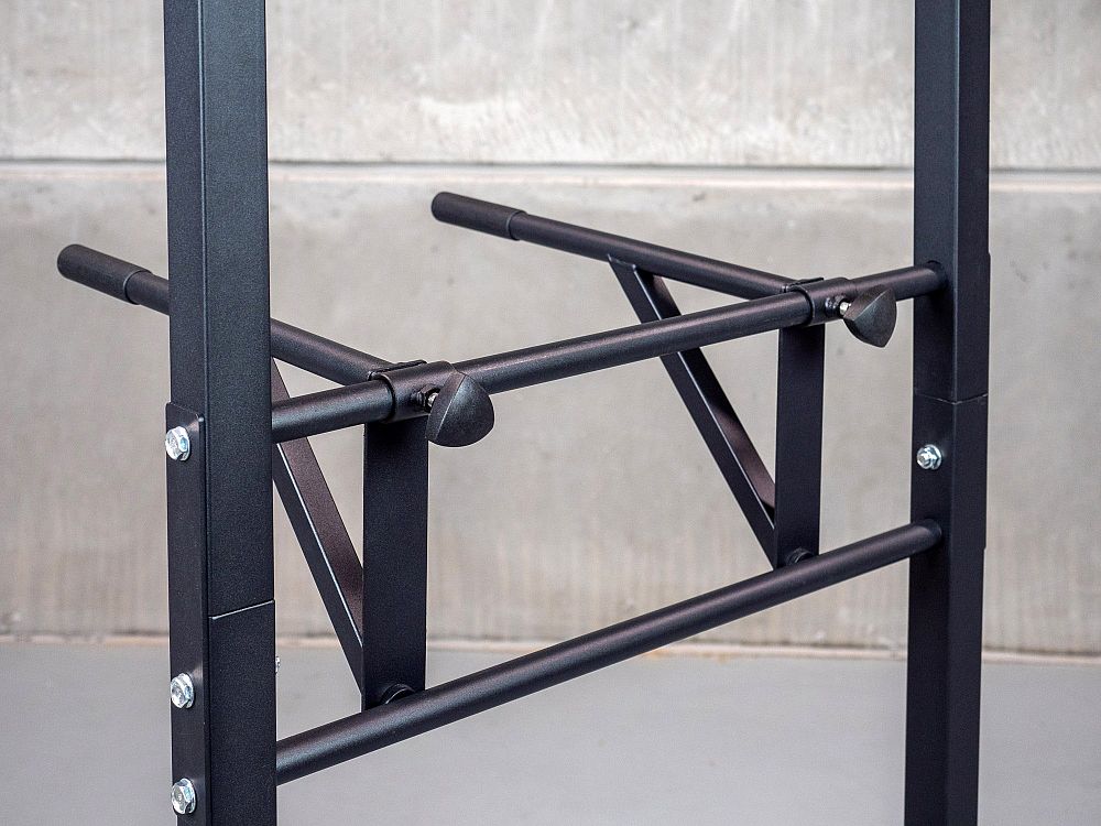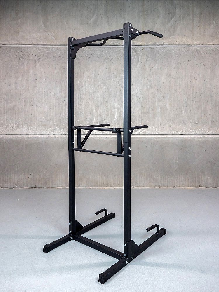 Jedná se o volně stojící stojanovou konstrukci s bradly a hrazdou, která pracuje s vlastní vahou. Kromě tyče na shyby a podstavce na přitahování či zvedání nohou disponuje robustním rámem, který je opatřen odolnou povrchovou úpravou v černé barvě. Stabilní konstrukce zajišťuje bezpečnost a komfort během cvičení.
