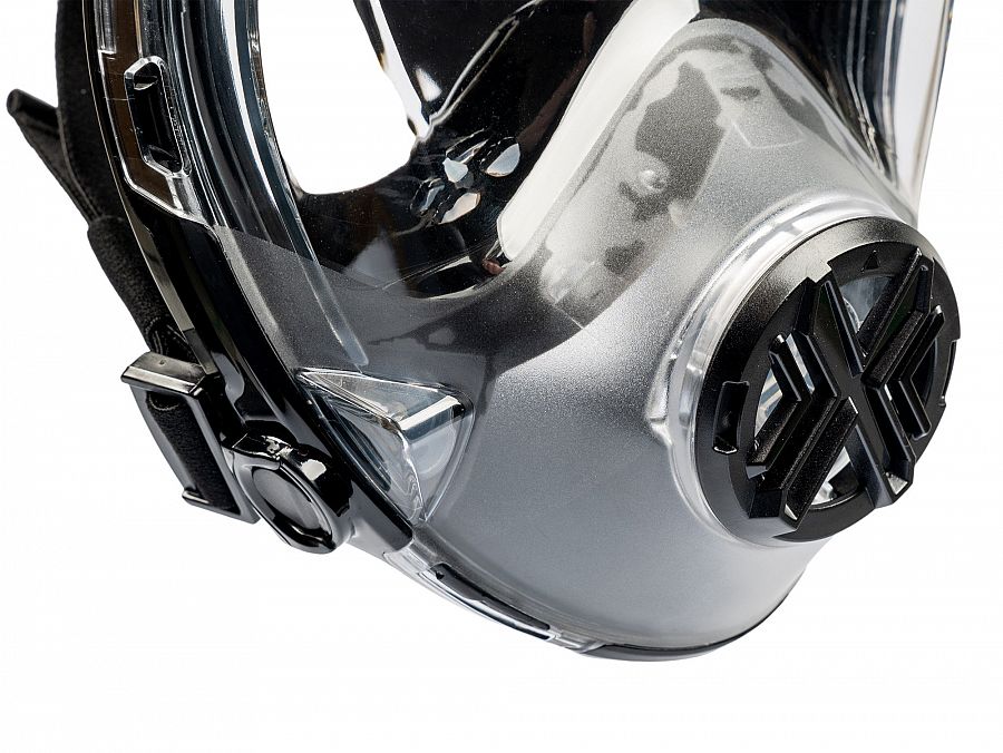 - Plovoucí kulička uvnitř trubice zabraňuje vniknutí vody do masky i při ponoření pod vodu