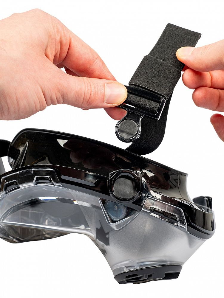 - Plovoucí kulička uvnitř trubice zabraňuje vniknutí vody do masky i při ponoření pod vodu
