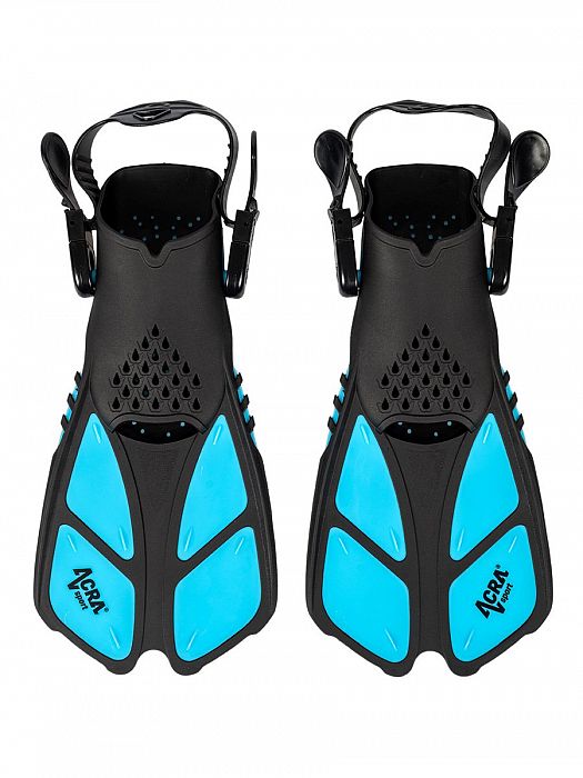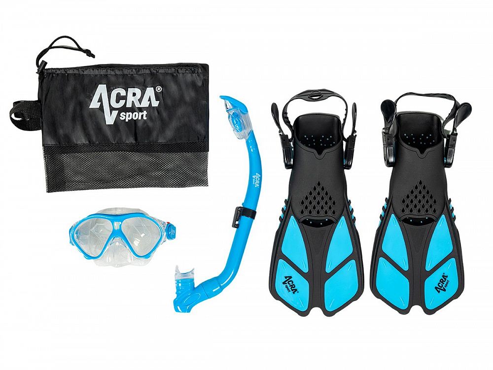 Dětská sada na šnorchlování Acra sport obsahuje: nastavitelné dětské ploutve, suchý šnorchl, plaveckou masku.
